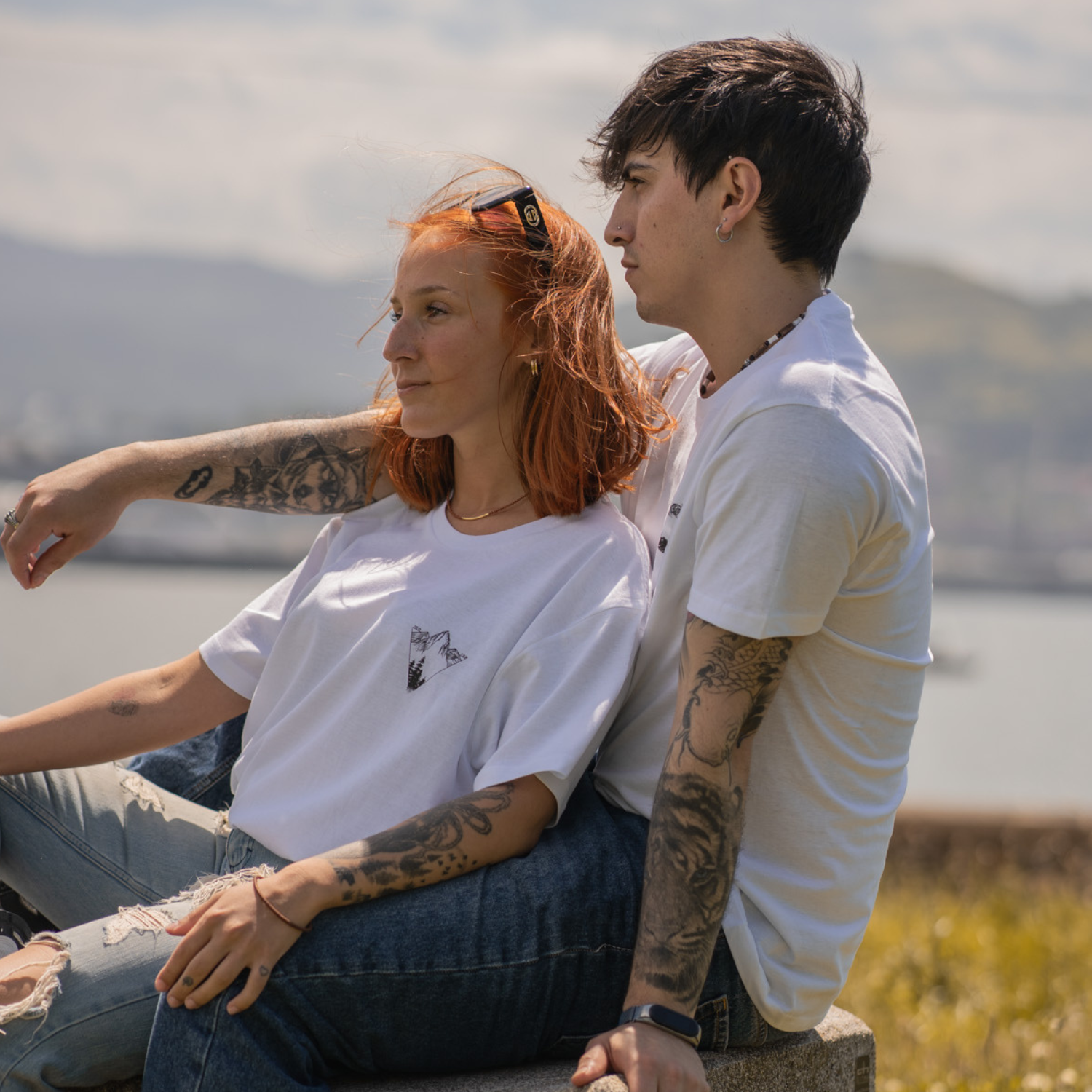 Blanche, fraîche et avec une âme de voyageuse. Ce t-shirt rend hommage à cette chaîne de montagnes qui, depuis des siècles, nous protège, trace des frontières et relie des chemins.